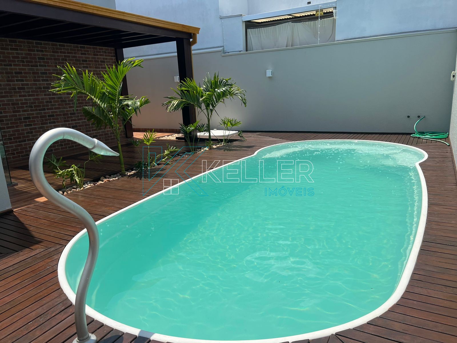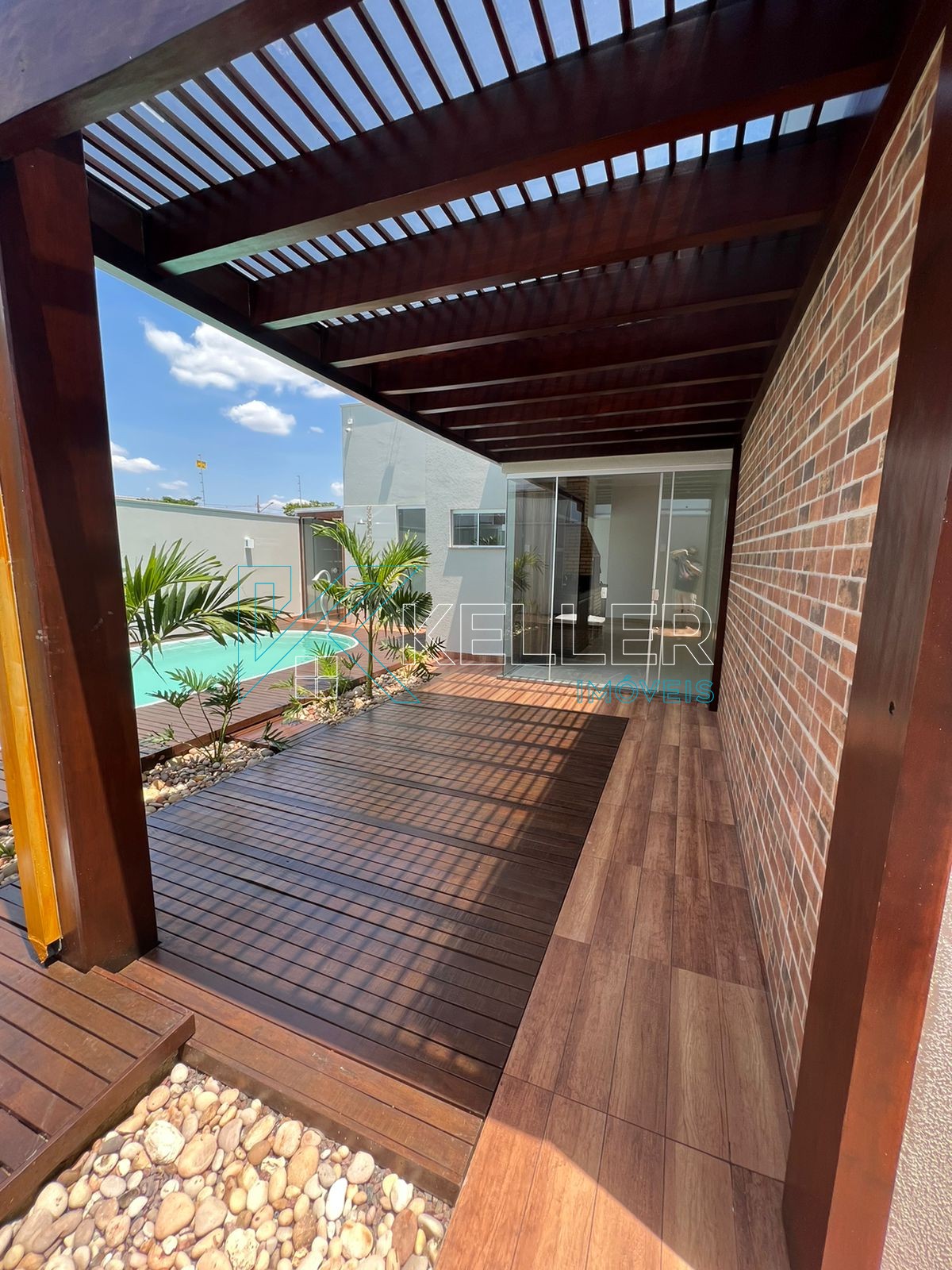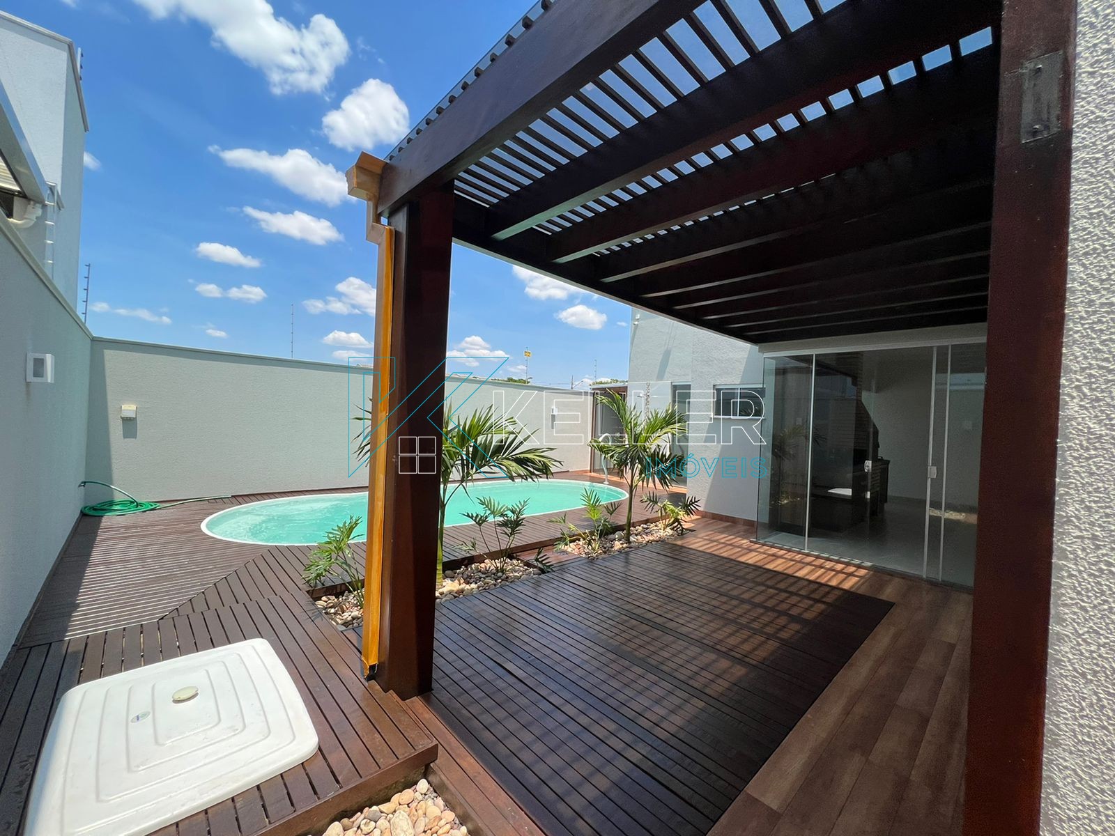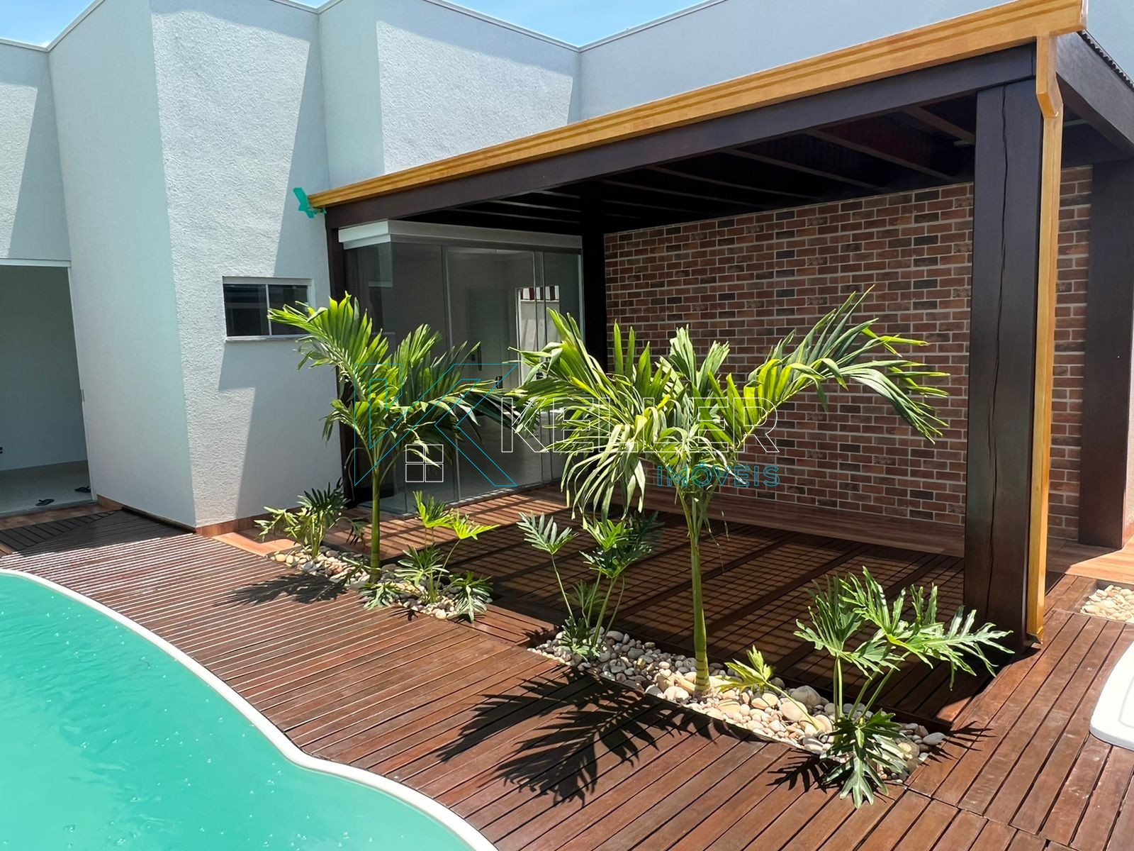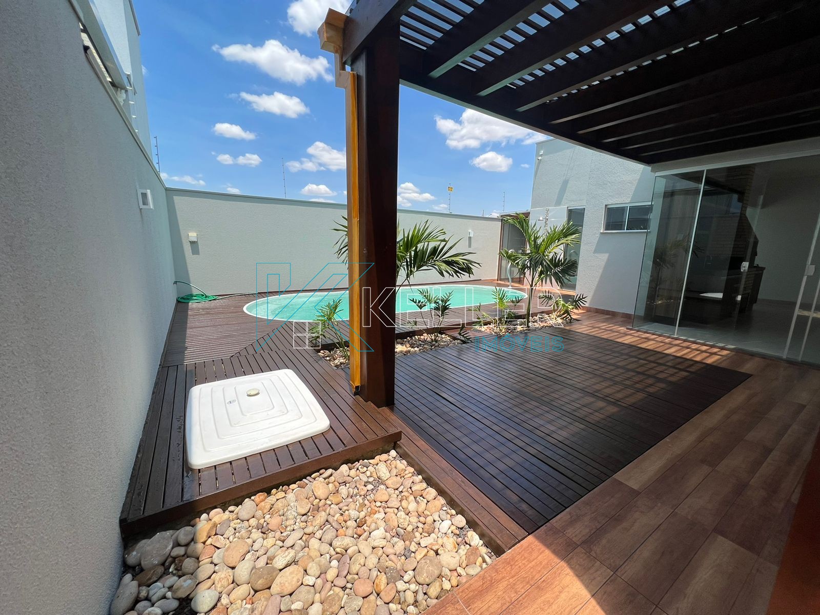 🔼Piscina aquecida com cascata/hidro e Pergolado de Itaúba coberto com vidro temperado