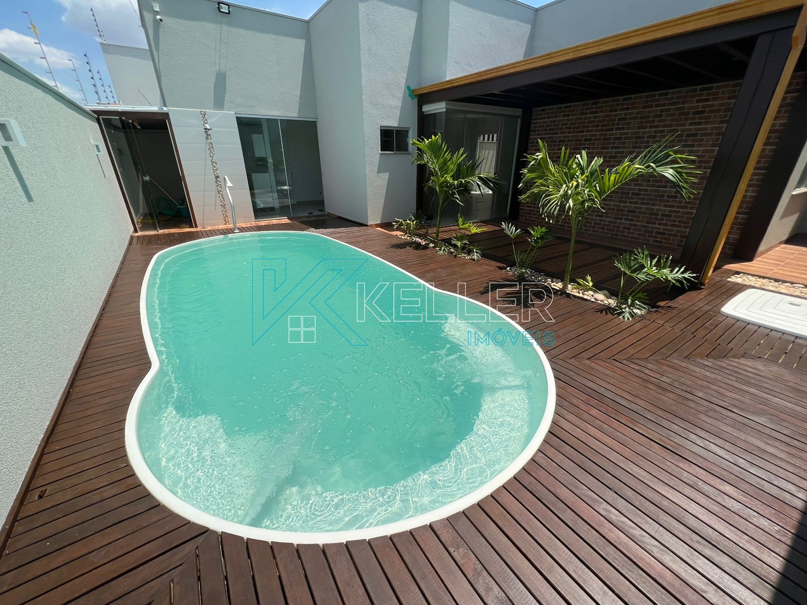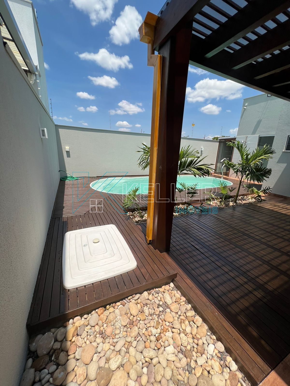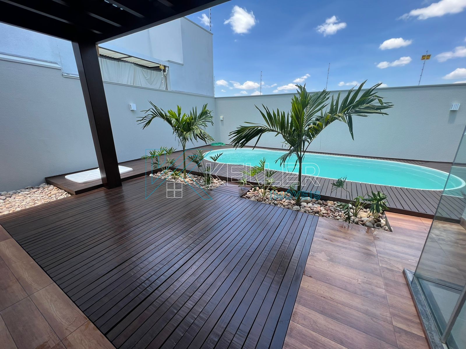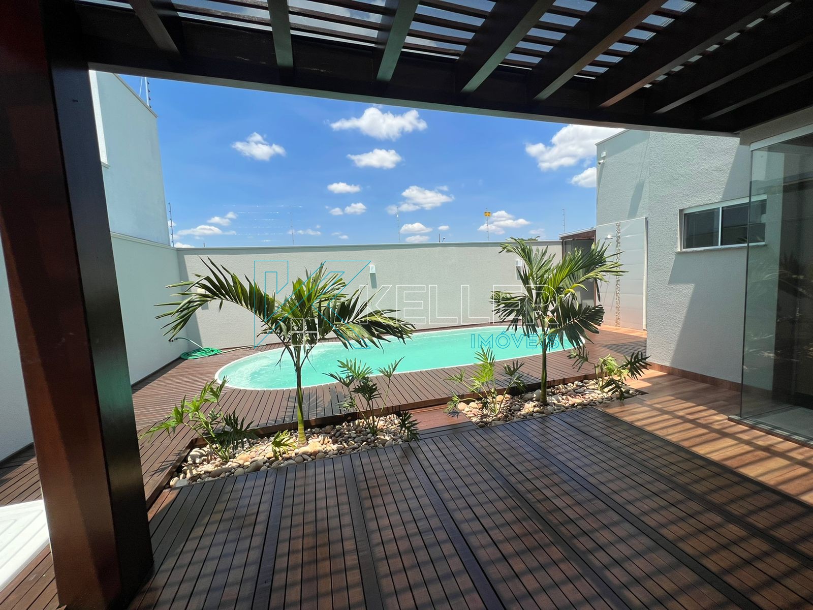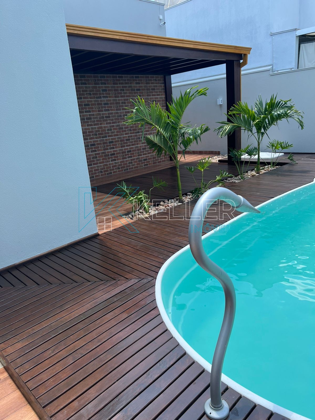 🔼Piscina aquecida com cascata/hidro e Pergolado de Itaúba coberto com vidro temperado