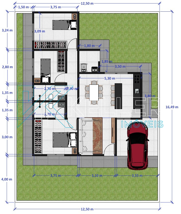 Possui: 🚘 Garagem coberta 📺 Sala ,🍽 Cozinha espaçosa 🚽 1 Banheiro Social 🛏️ 2 Quartos 🛏️🛁1 Suíte (total 3 quartos ) 👖1 Lavanderia