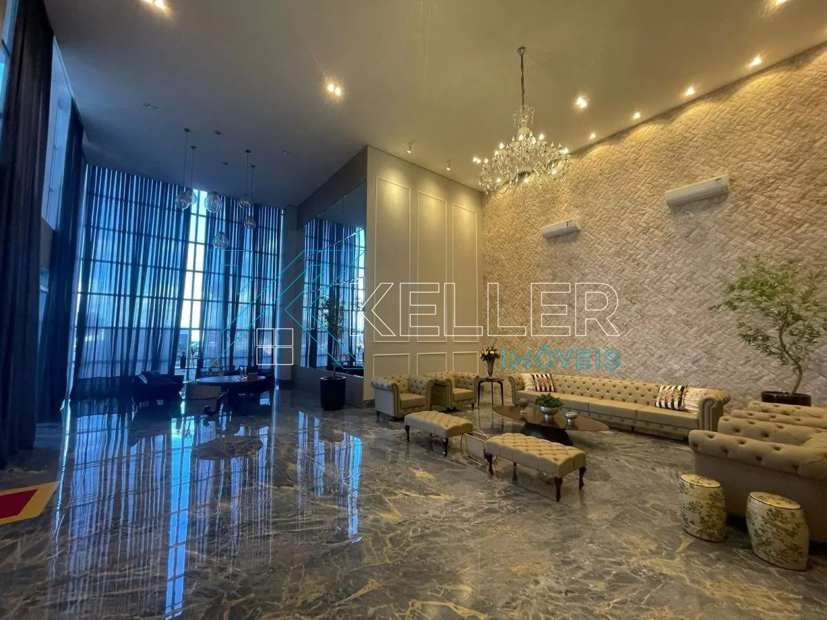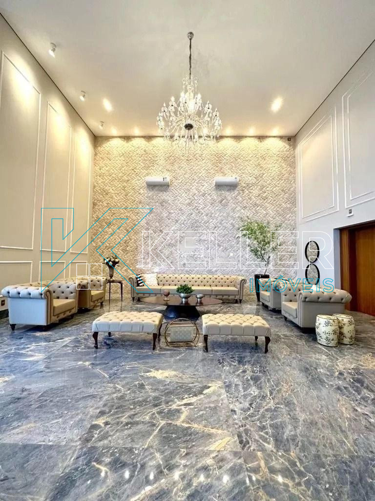 Esquadrias em alumínio, laje, porcelanato, iluminação em LED, recepção ampla e com design impecável.
